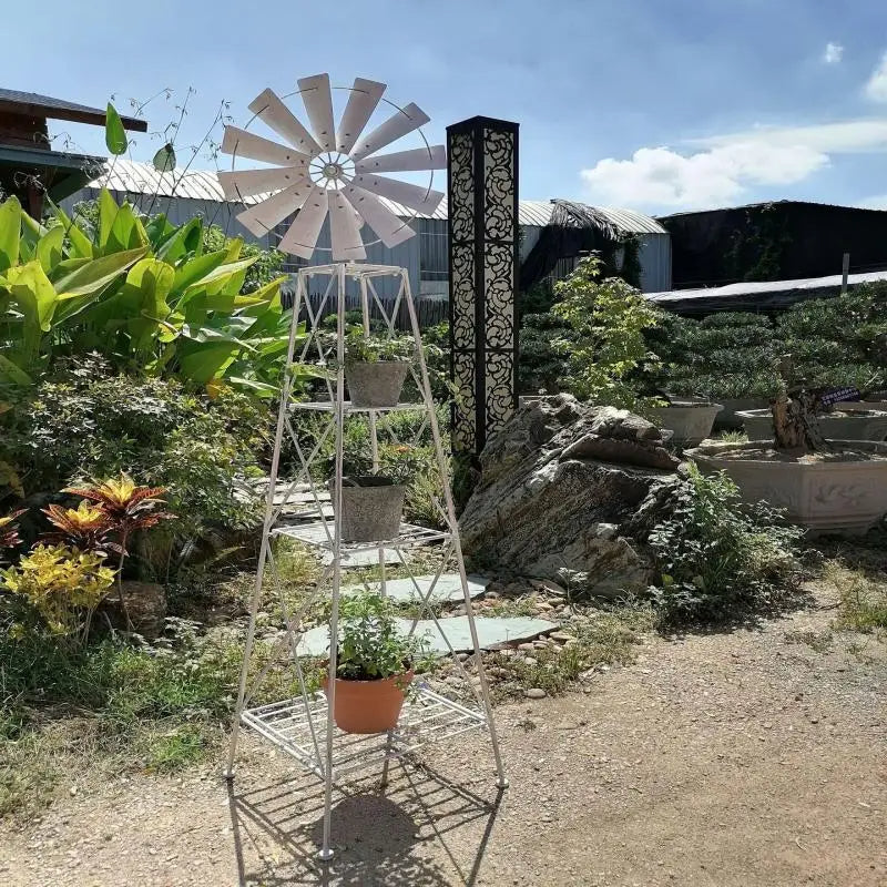Creative metal garden windmill3 tier plant stand garden patio balcony plant climbing decorations for home
