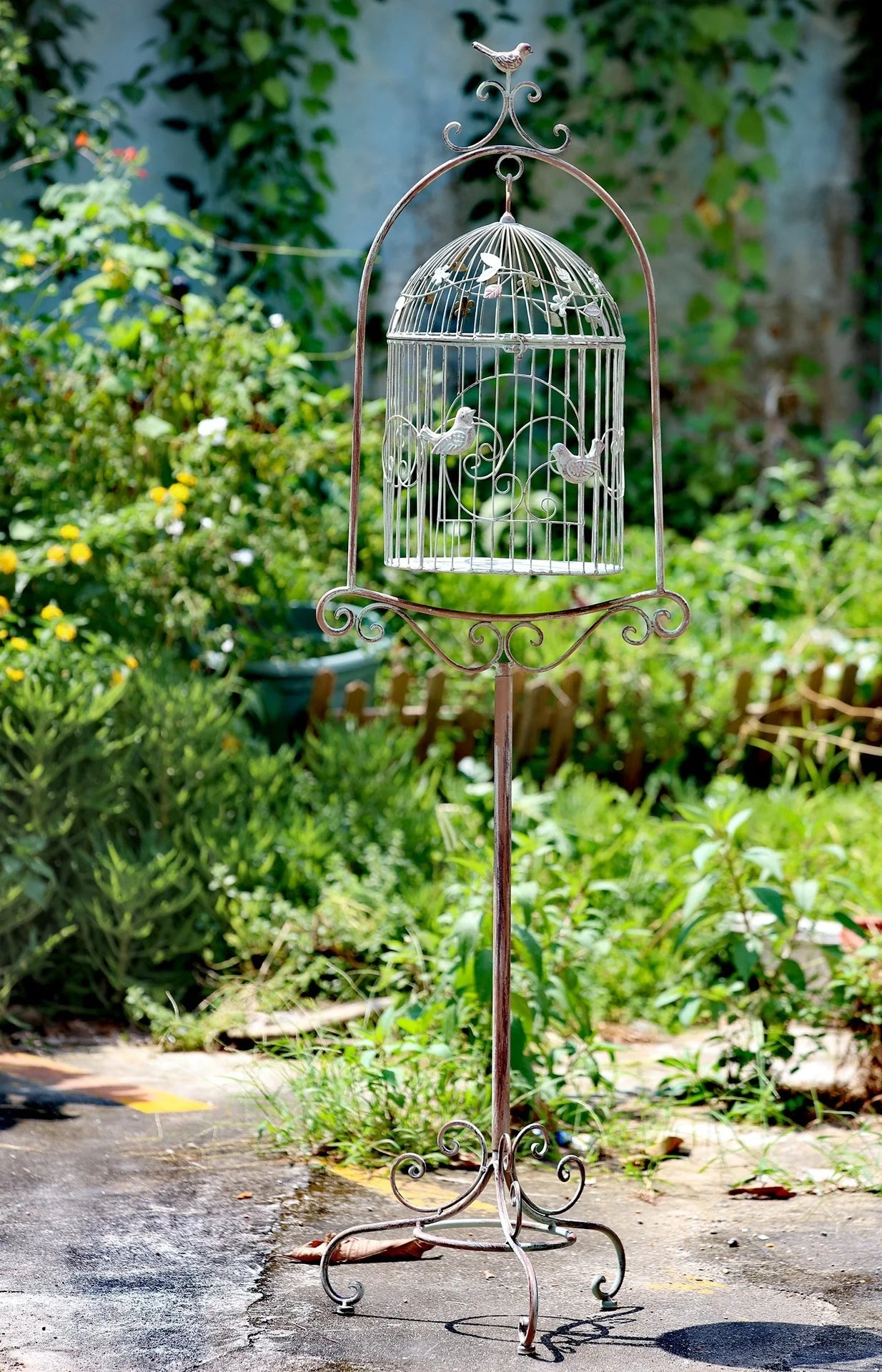 Iron bird cage flower stand outdoor display garden storage pot stand to make old white bird cage flower table crafts
