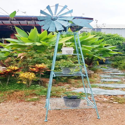 Creative metal garden windmill3 tier plant stand garden patio balcony plant climbing decorations for home