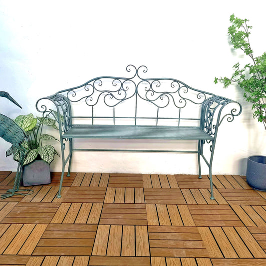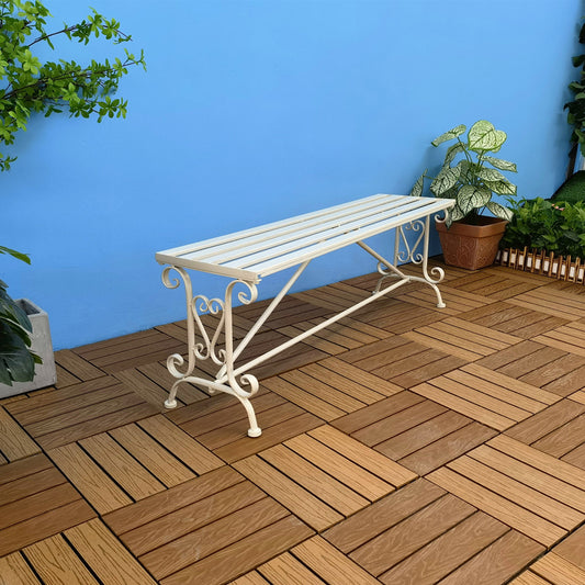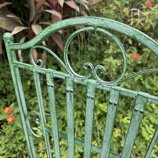 Vintage Metal Wrought Iron Foldable Slatted Design Patio Bench Outdoor Garden Bench