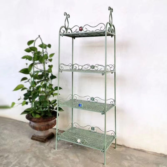 Country Retro Wrought Iron Flower Pot Stand Garden Table Shelf Decorative Flower Stand