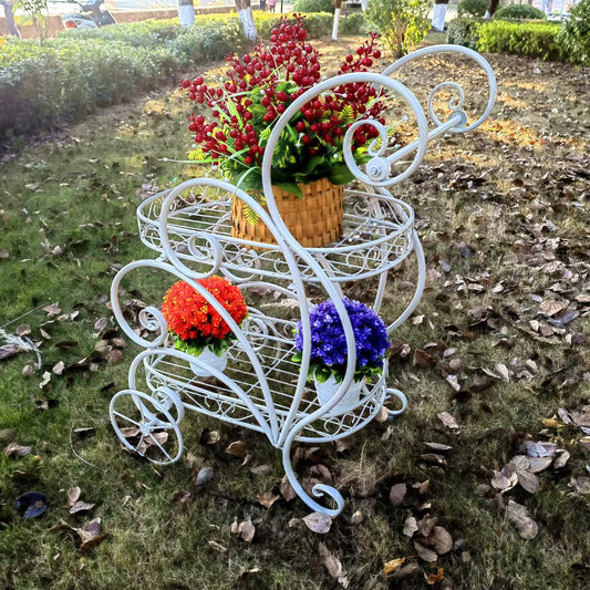 Outdoor Metal Bicycle Plant Stand Flower Pot Cart Holder for Home Garden Patio Garden Supplies