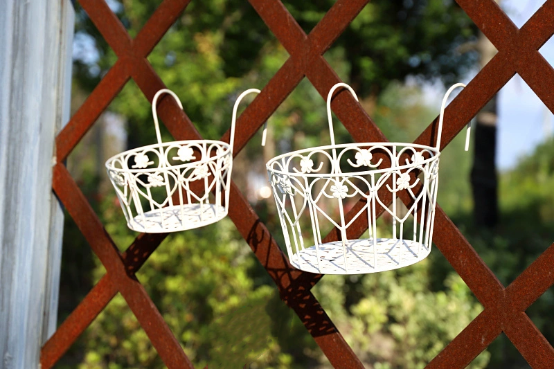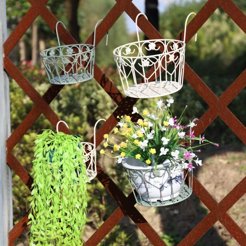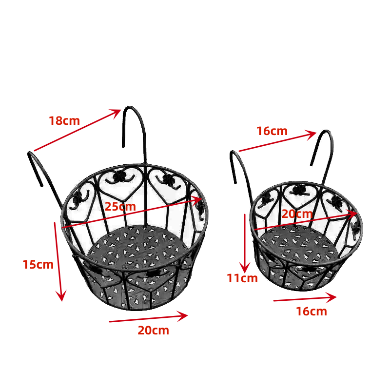 2-piece set Hanging Railing Planter Baskets Flower Pot Holder Hanger Balcony Planters Railing Mounted plant stand metal