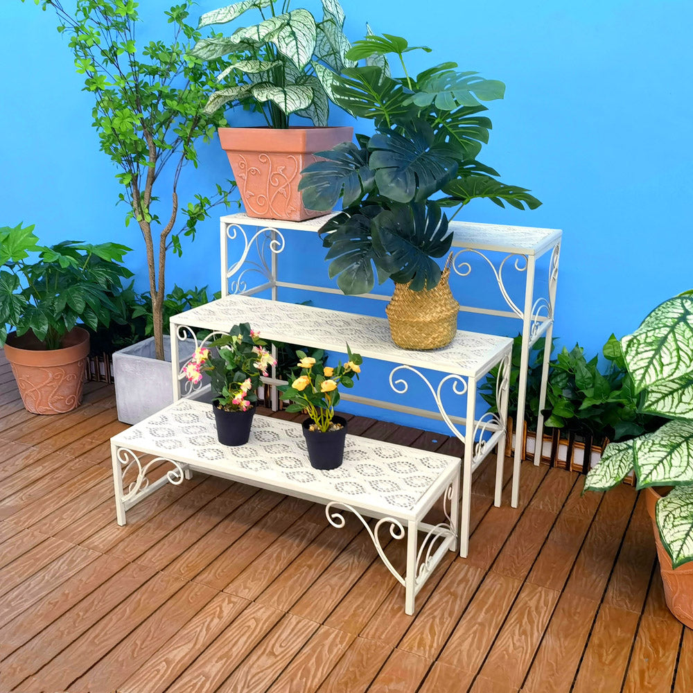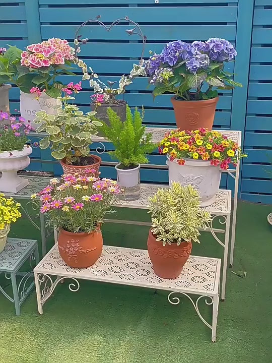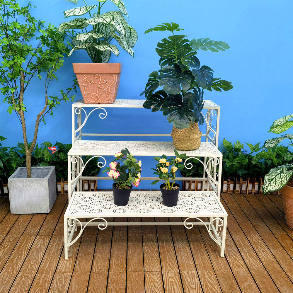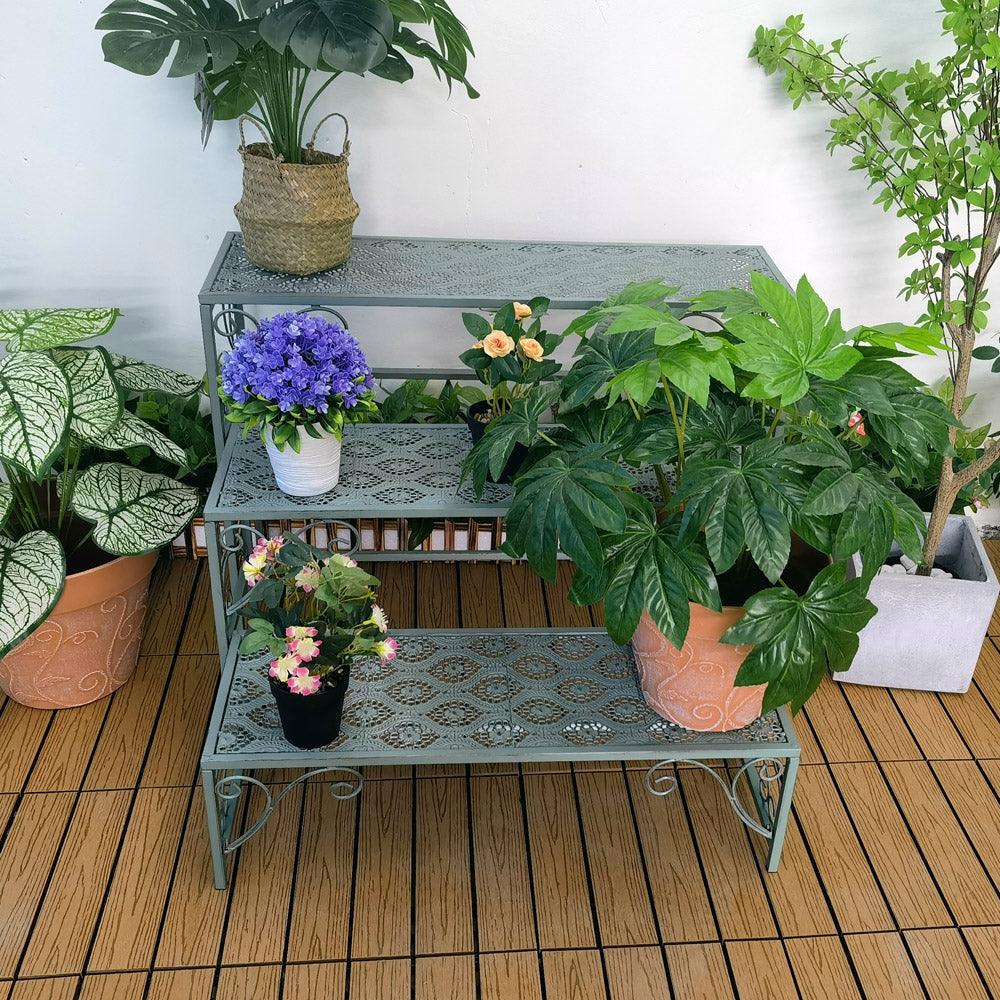 Suporte de flores de 3 andares, prateleira de jardim, vaso de flores, expositor, metal, planta, decorativo, ferro, metal, flor, rack