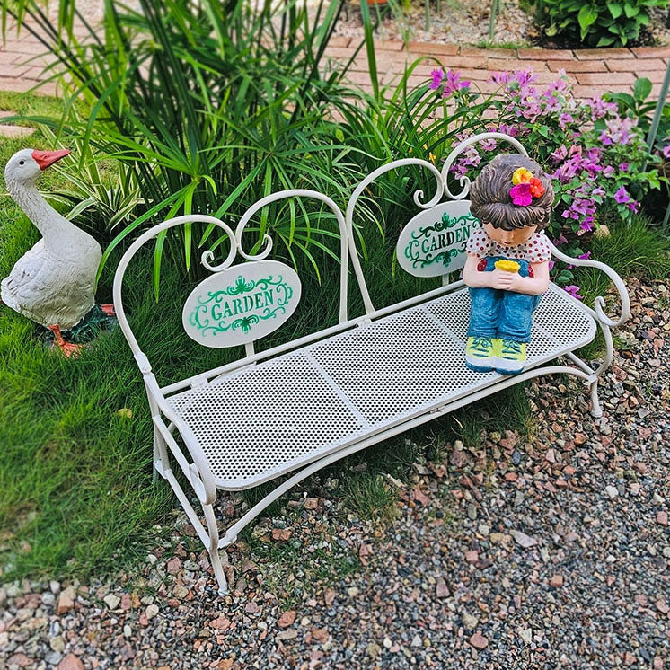 Bancos de jardim para crianças ao ar livre, resistentes a todos os climas, metal branco, ferro, longo, antigo, dobrável