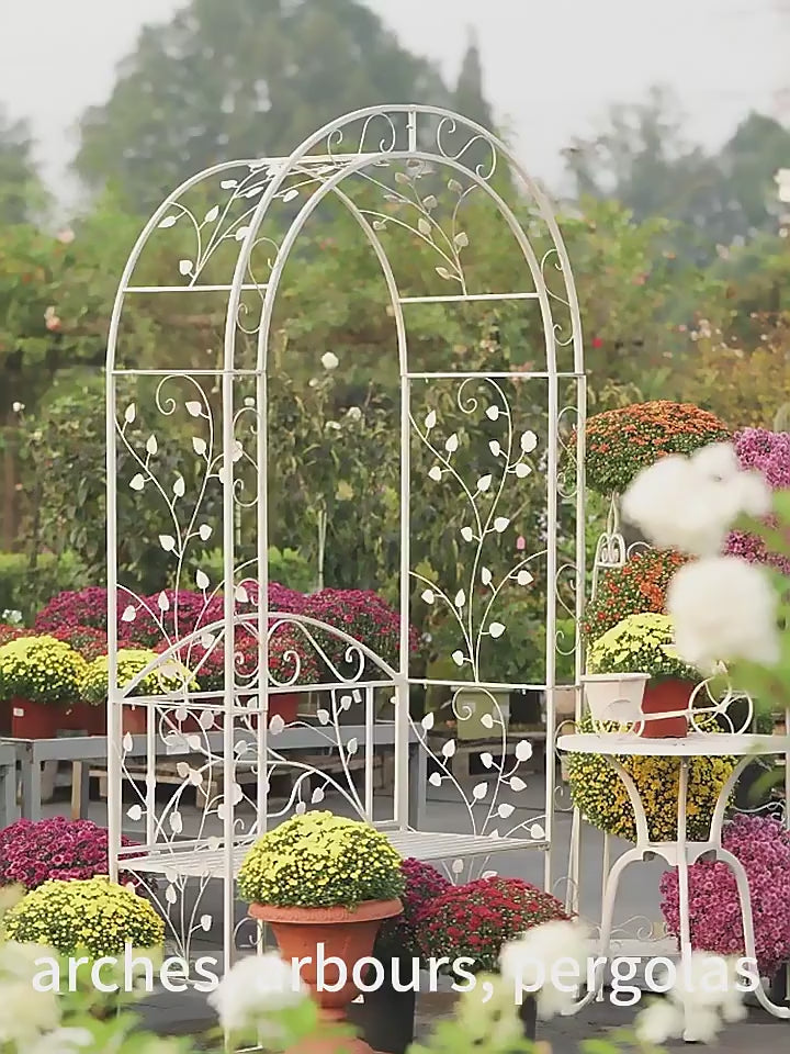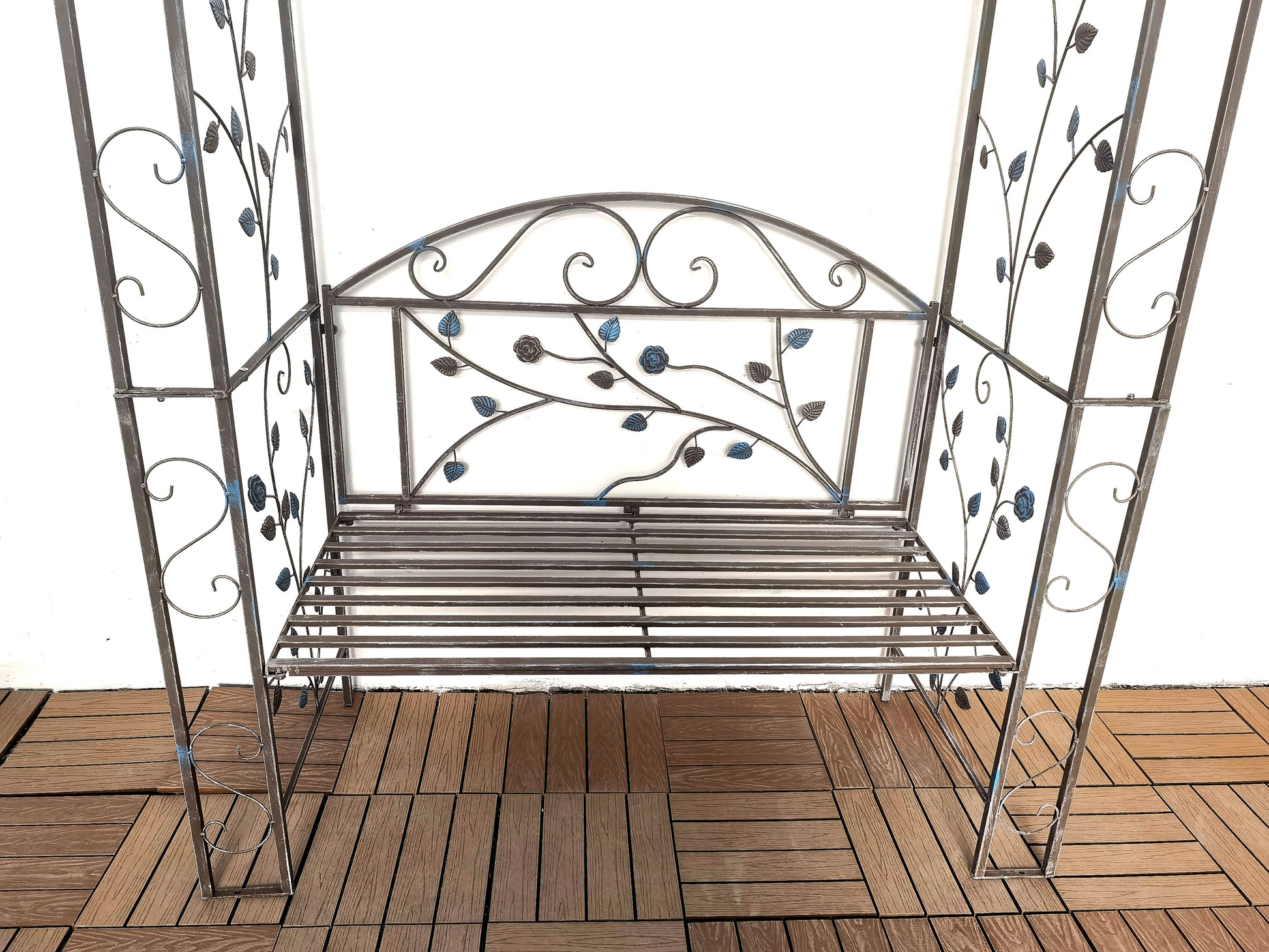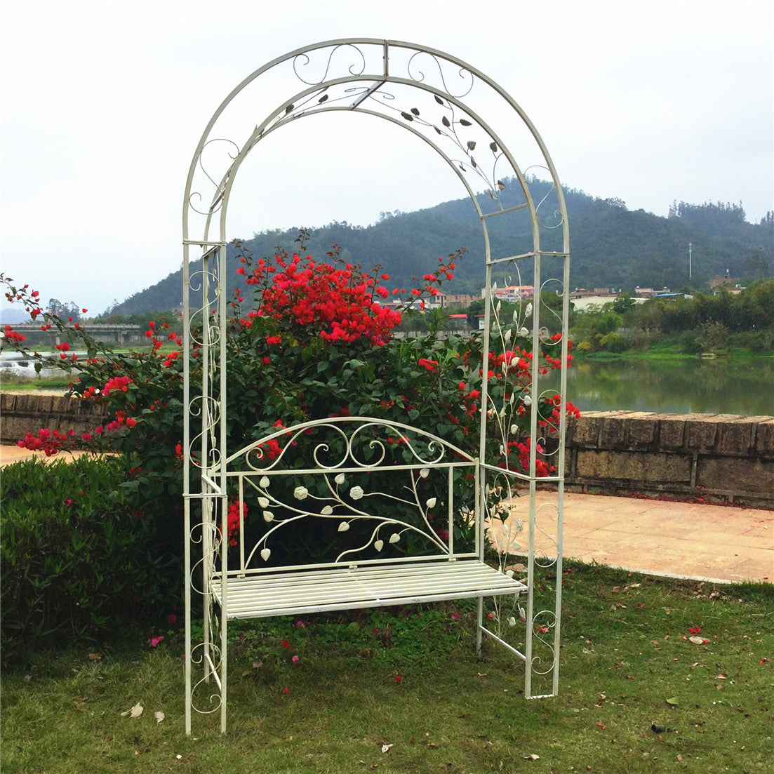 Banco de jardim de ferro antigo, arco de metal para exterior, arco de jardim redondo, arco de metal