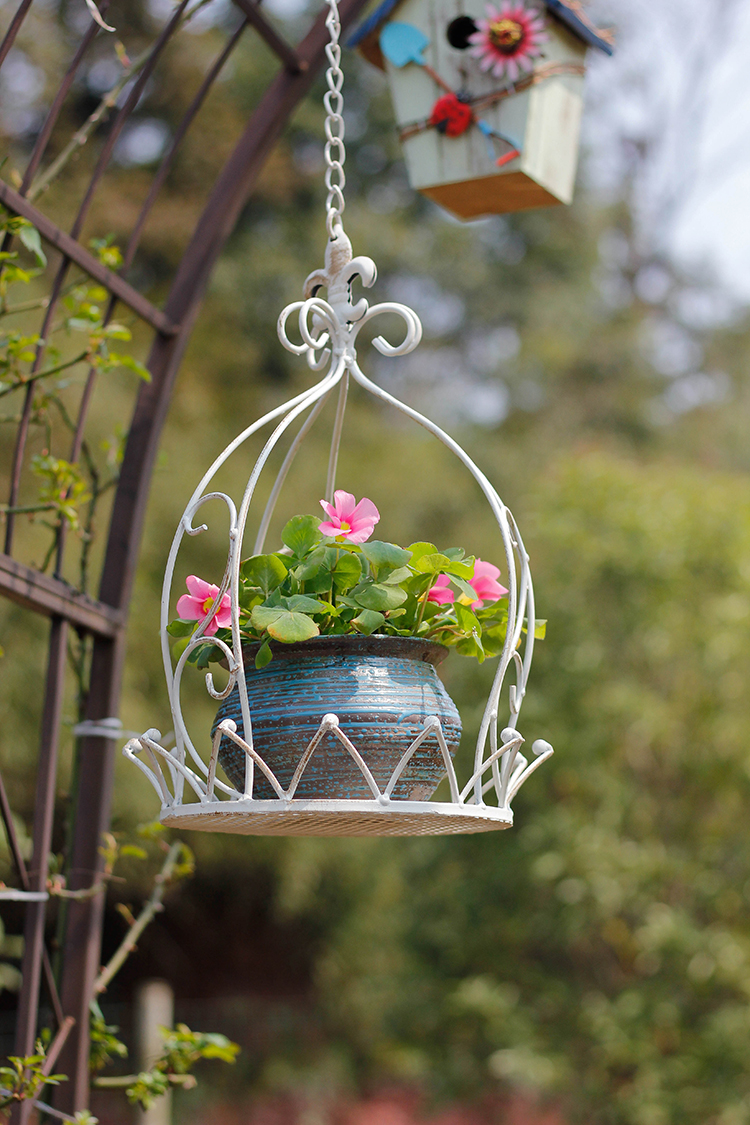 Iron Birdcage Hanging Planter, Metal Wire Flower Pot Basket Wrought Iron Plant Stands for Plants