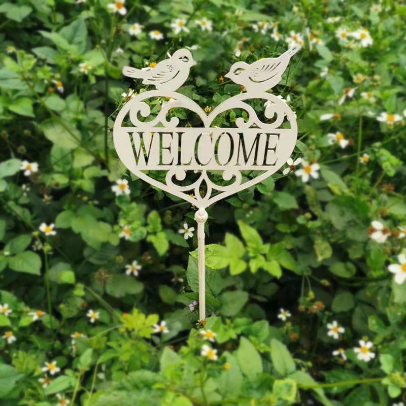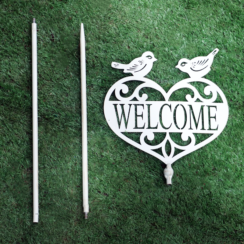 Outdoor garden yard decoration metal ornament bird welcome sign metal stake Gardening Decoration