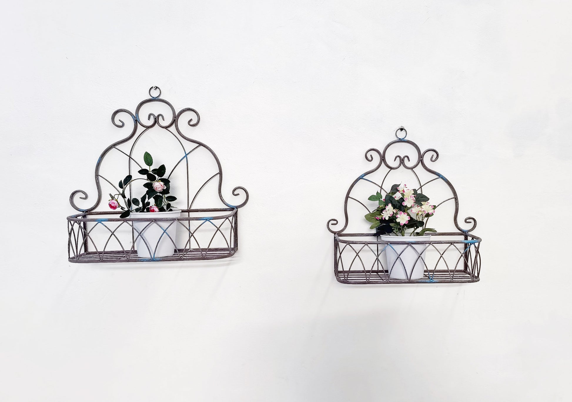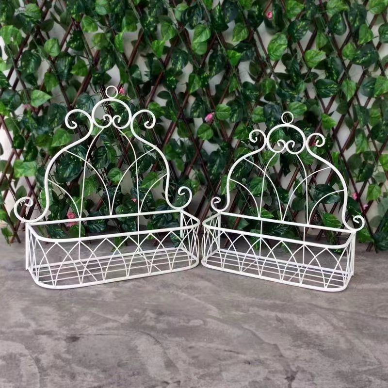 Retro Wall-Mounted Flower Basket Metal Iron Shelf Outdoor Garden Balcony Ornaments Flower Pots & Planters Flower Stand