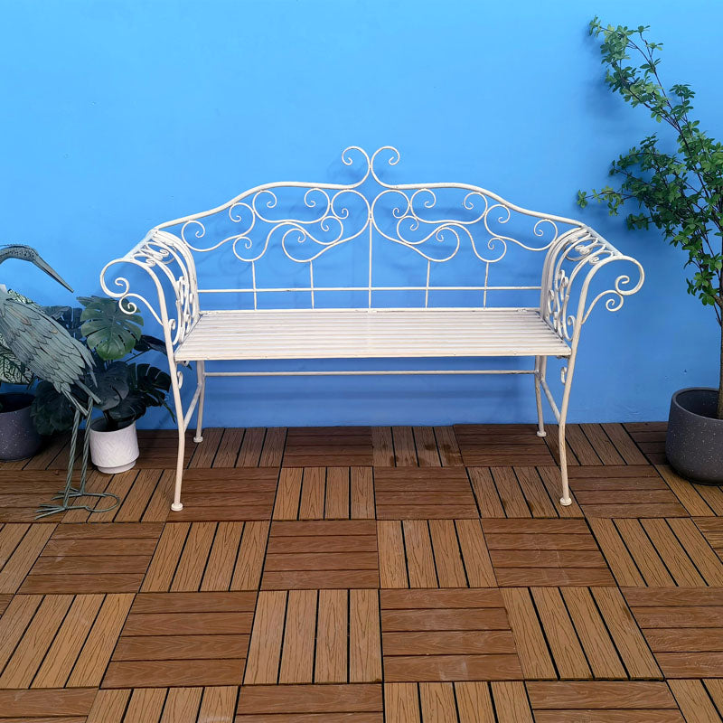 Vintage Metal Wrought Iron Foldable Slatted Design Patio Bench Outdoor Garden Bench