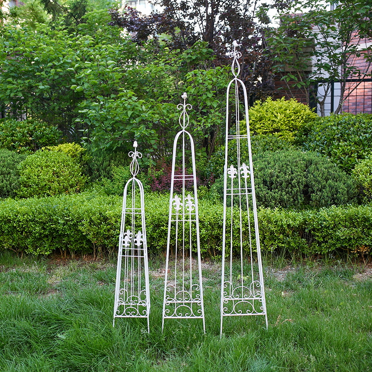 Wholesale China Factory Garden Wrought Iron Metal garden obelisk trellis for climbing plants outdoor set 3 plant trellis